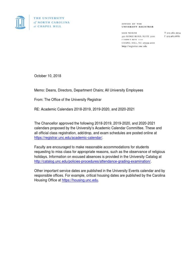 Academiccalendar 081018 Academic Term University Of North Carolina At Chapel Hill