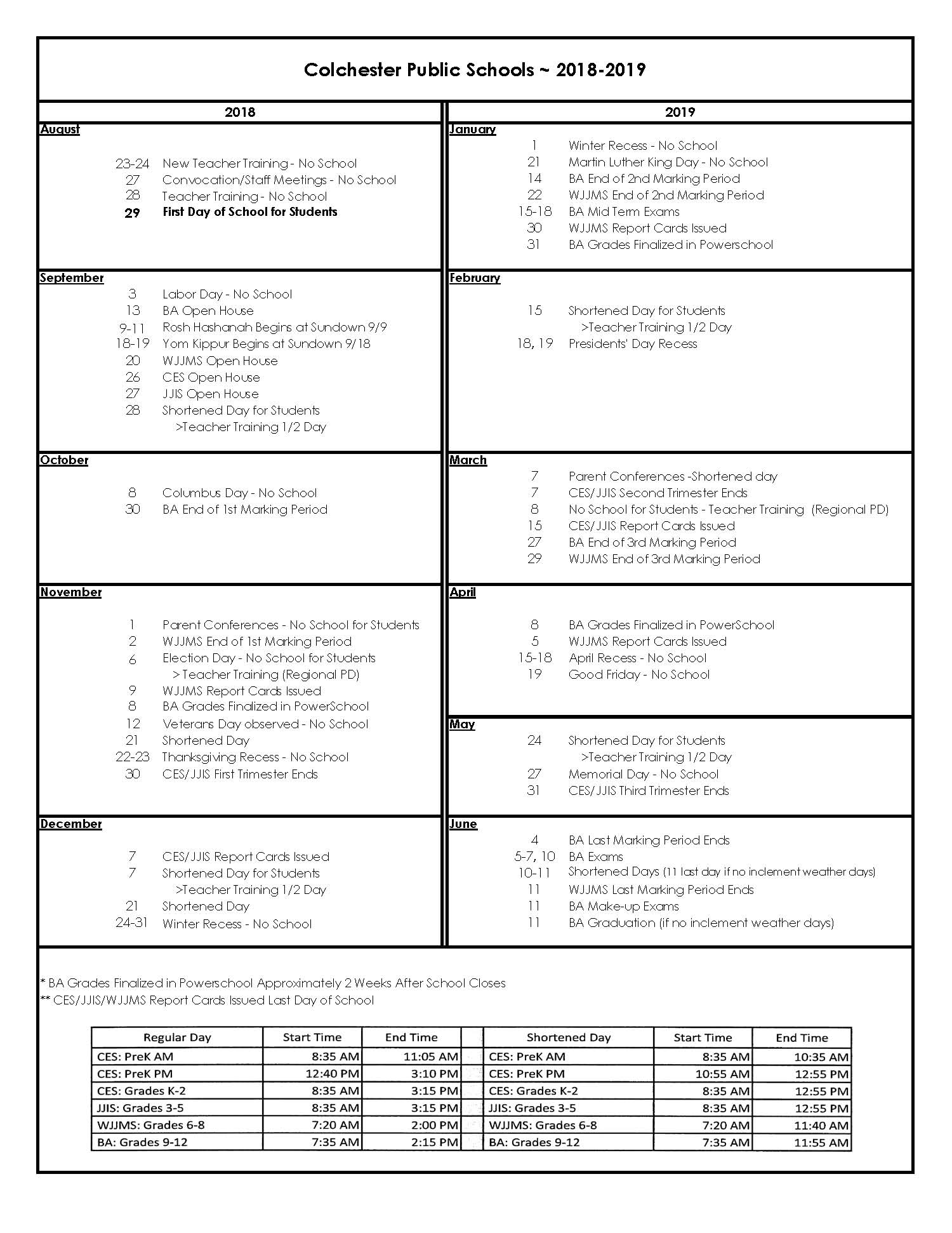 Colchester Ct School Calendar. Each of the fifty state constitutions includes a requirement for the provision of a Public School system and each state including Connecticut also has a compulsory education law that requires school. Jack Jackter Intermediate School. A Certified Wildlife Habitat Site.