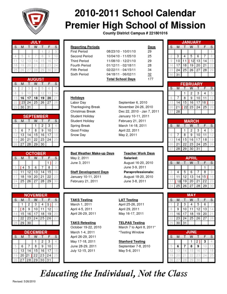 School Calendar Mission Academy High School